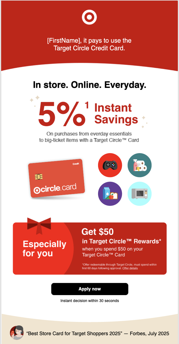 Inbox Preheader: Start saving 5% today on purchases with the Target Circle™ Card.